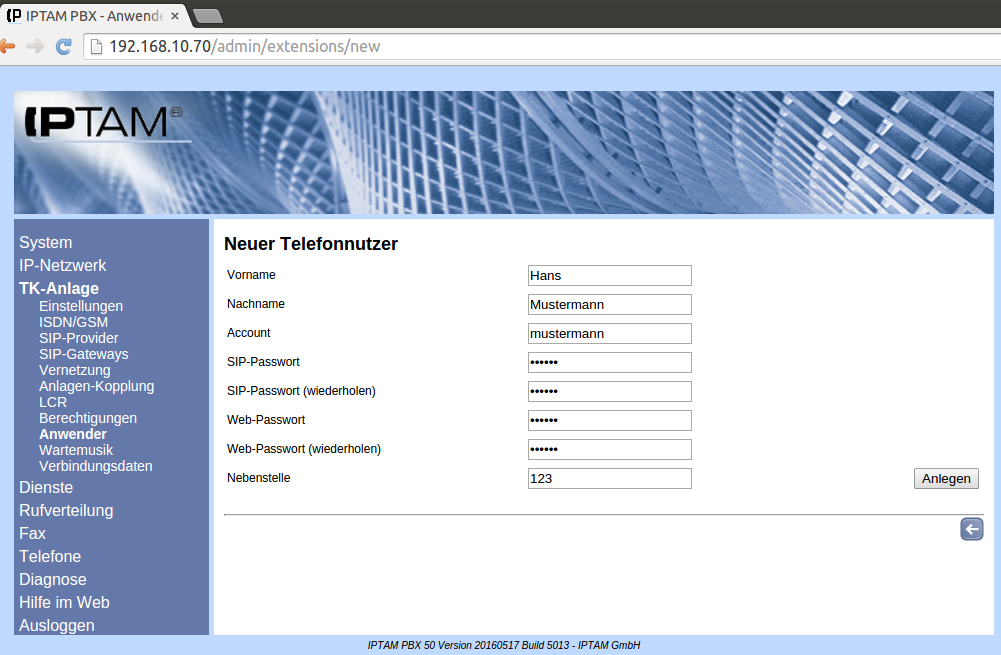 Anlegen eines neuen Anwenders
