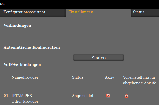 In der Übersicht wird die erfolgreiche Registrierung an der IPTAM PBX angezeigt.