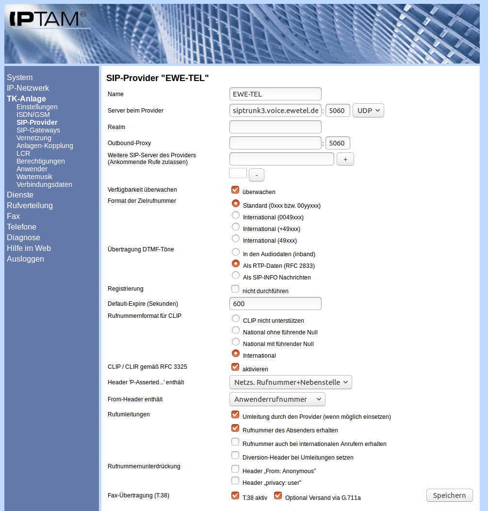 Einstellungen: EWE SIP Trunk (EWE TEL GmbH)