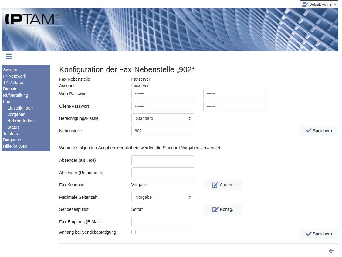 Fax►Nebenstellen richten Sie die Fax-Nebenstellen für die Anwender Ihrer IPTAM