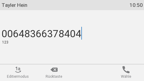 Image Bei Anrufen, die über Ruflisten oder das Telefonbuch gestartet werden, kann die Rufnummer vor dem Anruf bearbeitet werden. Die Taste „Edit & Wahl“ führt zum links dargestelltem Dialog. Dort kann die Rufnummer vor der Wahl modifiziert werden..