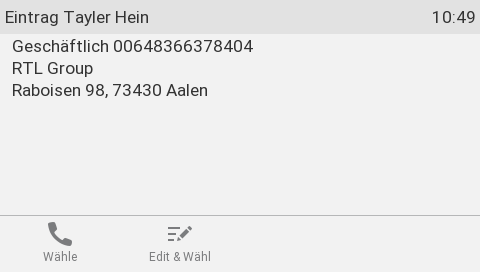 Image Image Das Telefonbuch zeigt weitere Informationen zu Kontakten, wie in der Abbildung links. Die linke Taste „Details“ führt zur rechts dargestellten Detailansicht.