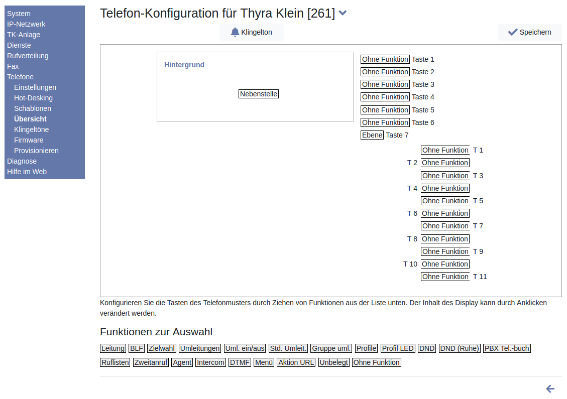 Image Sie konfigurieren die Funktionen des Telefons über Ihre IPTAM® PBX. Dazu können Sie die unter der schematischen Darstellung gezeigten Funktionen per Drag&Drop auf eine der Tasten platzieren (links sehen Sie als Beispiel ein titpel 3130). Wenn die Funktion weitere Angaben (z.B. für die Tastenbeschriftung) benötigt, öffnet sich ein Dialog. Diesen erreichen Sie auch nachträglich durch Anklicken der konfigurierten Taste. Eine Beschreibung der Tastenfunktionen haben wir hier alphabetisch gelistet.