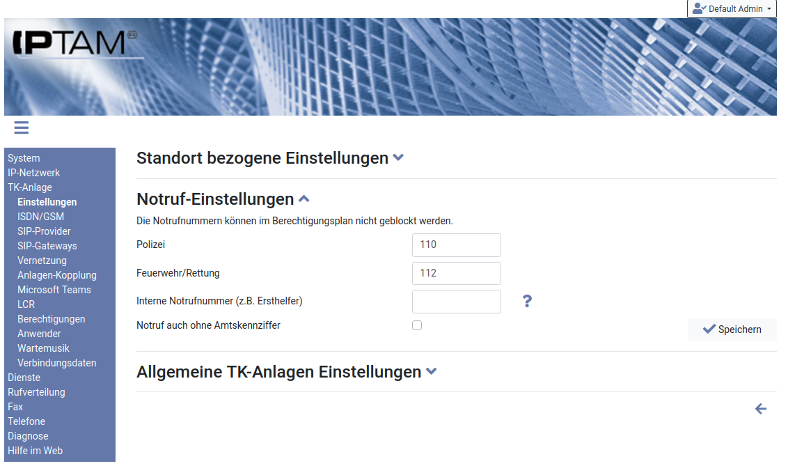 Nehmen Sie nun einige allgemeine Einstellungen zur TK-Anlage vor.