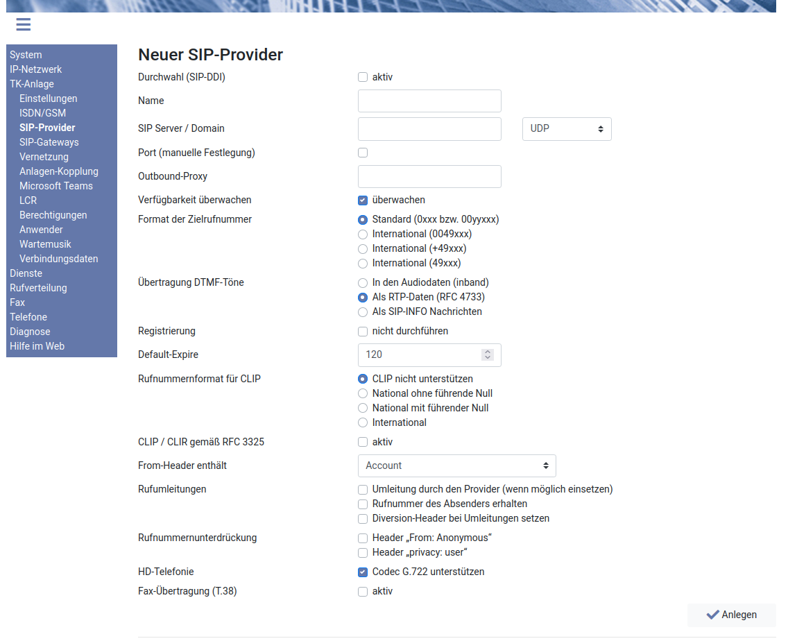 Setzen Sie diese Checkbox bei einem Provider, der Ihnen einen SIP-DDI Anschluss bietet.