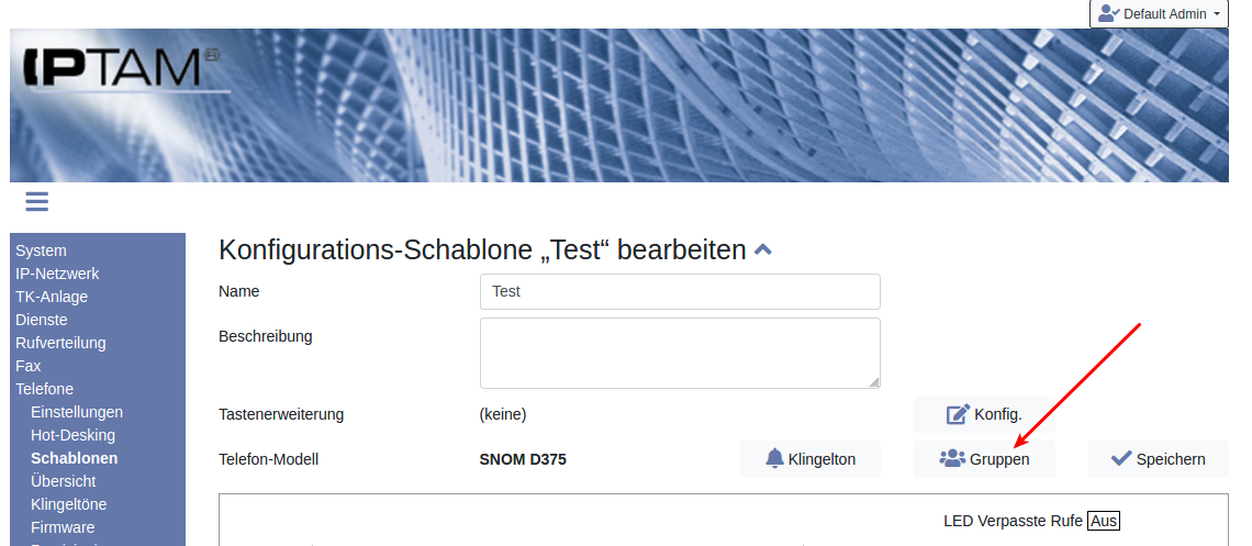 Die Auswahl „Anzeige bei den Teilnehmern“ bestimmt, was im Telefon der angerufenen Gruppenteilnehmer angezeigt werden soll. Sie können zwischen den Optionen „Anrufer“, „Gruppenname“ und Kombinationen daraus wählen.