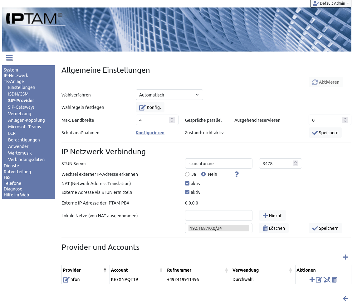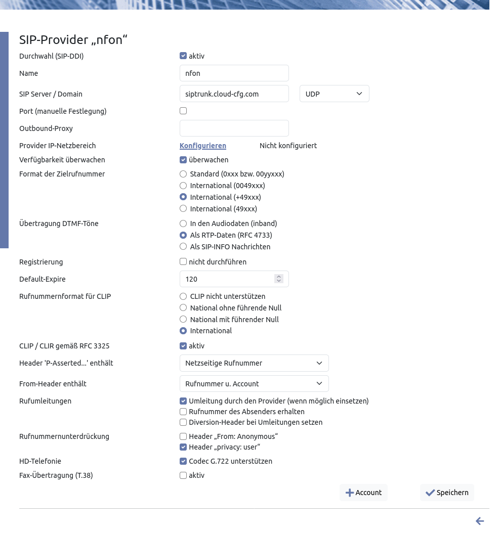 Einrichtung des Providers „NFON“