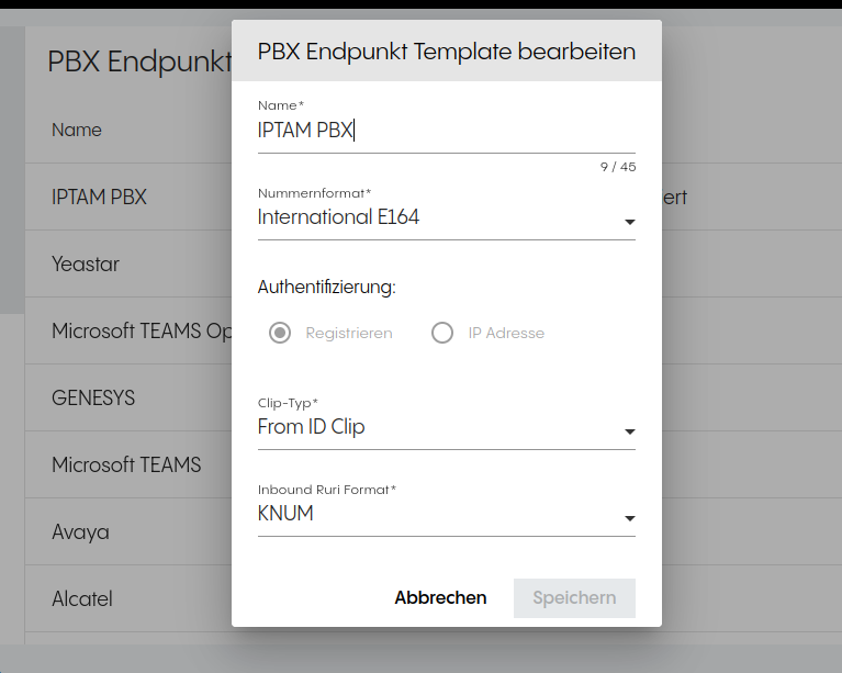 Konfiguration in der IPTAM@ PBX