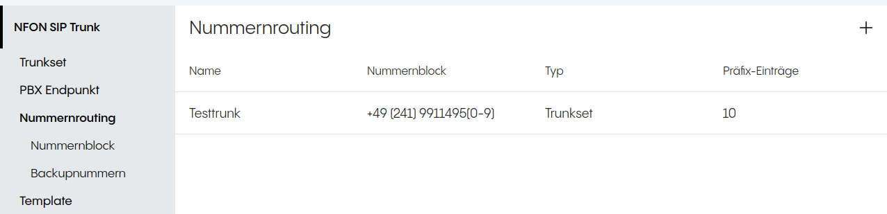 Image Image Bevor eine Telefonanlage als Endgerät an einem SIP Trunk Flexx verwendet werden kann, muss der Trunk in der Plattform eingerichtet werden. Loggen Sie sich dazu im Kundencenter ein und wechseln Sie in das Konfigurationsportal. Dort legen Sie zunächst ein Template an (linke Abbildung) und konfigurieren einen Eintrag für das Nummernrouting (rechte Abbildung).