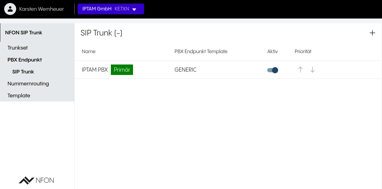 Einrichtung im Kundencenter der NFON Plattform