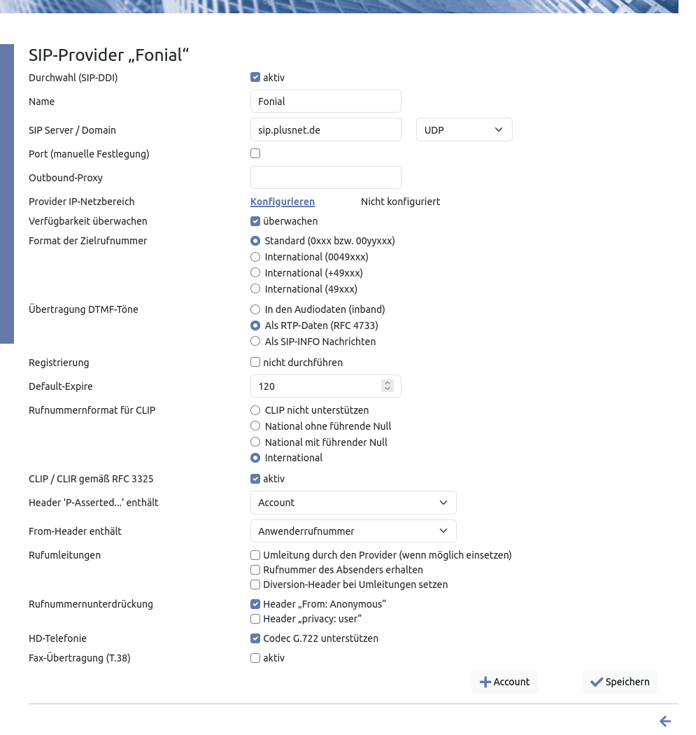 Einrichtung des Providers „fonial“