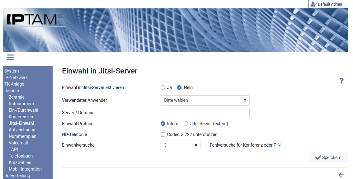 Option in der Telefonanlage „Einwahl-Prüfung Jitsi-Server (extern)“