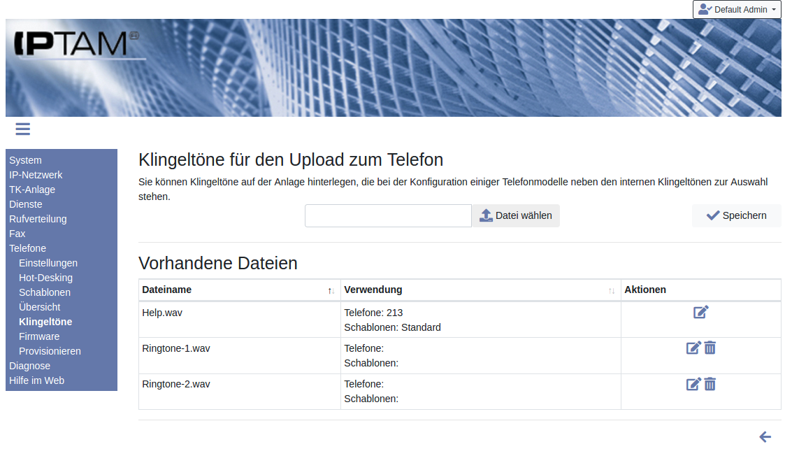 Telefone►Klingeltöne können Sie Sound-Dateien auf Ihre IPTAM