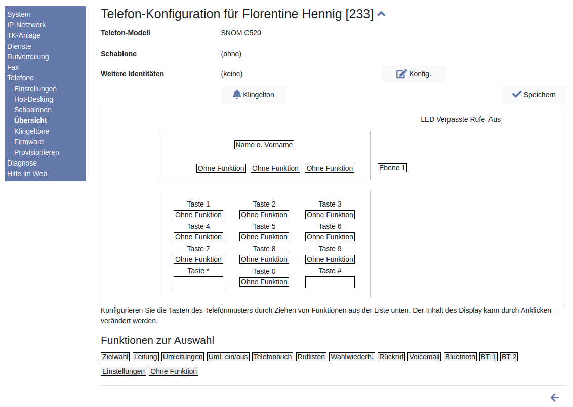 In der IPTAM® PBX legen Sie unter Telefone►Übersicht bei einem Anwender fest, dass das Konferenztelefon C520 ihm zugeordnet wird.