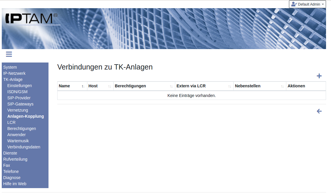 Möchten Sie Kopplungen zwischen IPTAM® PBX an anderen Standorten einrichten, so finden Sie die Einstellungen bei der Standortvernetzung.