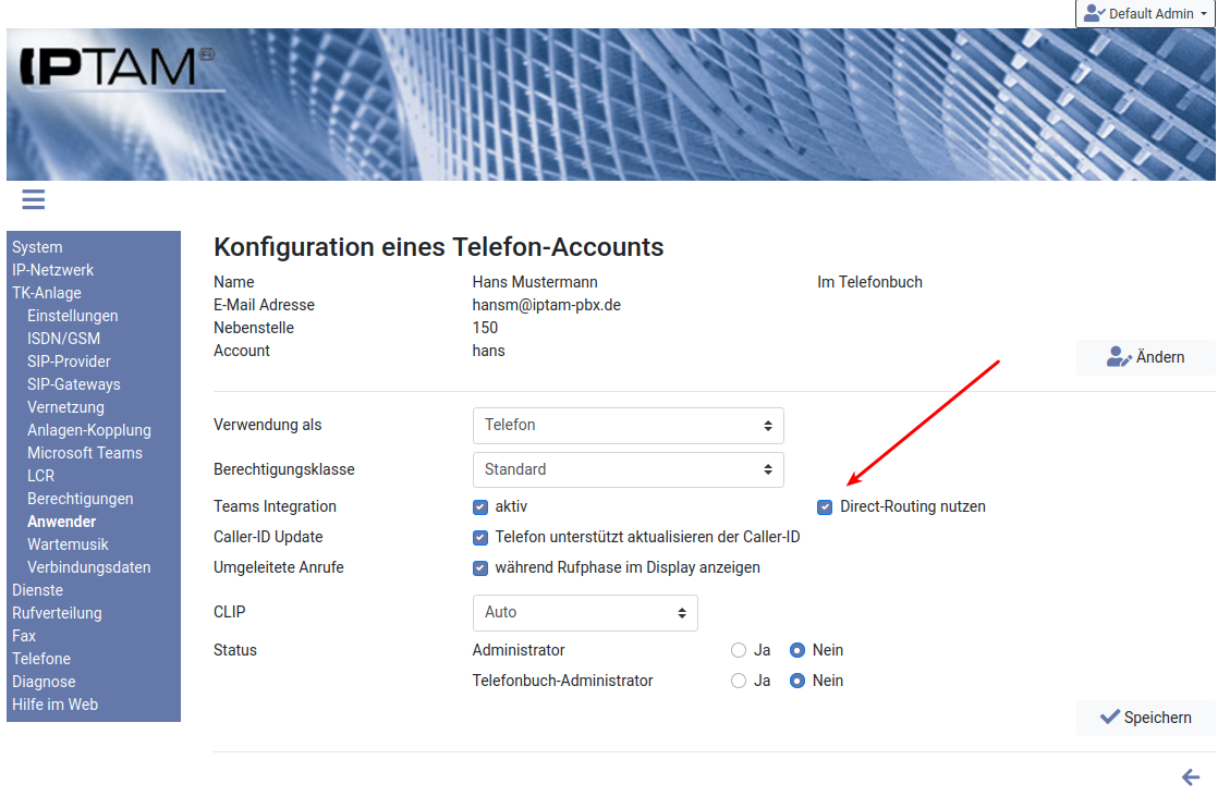 Die Checkbox und das Textfeld „Feste Stammrufnummer nutzen“ kann in der Regel leer bleiben, weil die Telefonanlage dann die E.164-formatierten Rufnummern aus dem SIP-Trunk ermittelt. In Sonderfällen kann es jedoch erforderlich sein, hier eine abweichende Rufnummer zu verwenden.