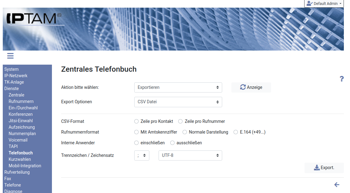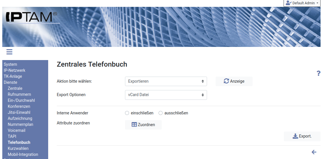 Sie können sich entscheiden, ob die internen Anwender im exportierten Telefonbuch enthalten sind oder nicht.