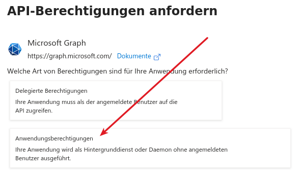 Klicken Sie nun in der linken Navigation auf „API-Berechtigungen“ und anschließend auf „Micorsoft Graph“ (linke Abbildung). „Microsoft Graph“ ist die API, die für die Kommunikation eingesetzt wird. Im nächsten Dialog (rechte Abbildung) klicken Sie auf „Anwendungsberechtigungen“ und suchen Sie die Berechtigungen „User.Read.All“. Wiederholen Sie den Schritt für die Berechtigungen „Presence.Read.All“ und „Presence.ReadWrite.All“.