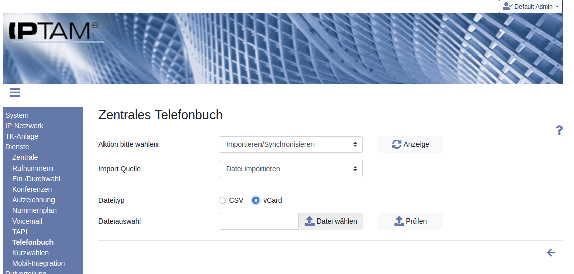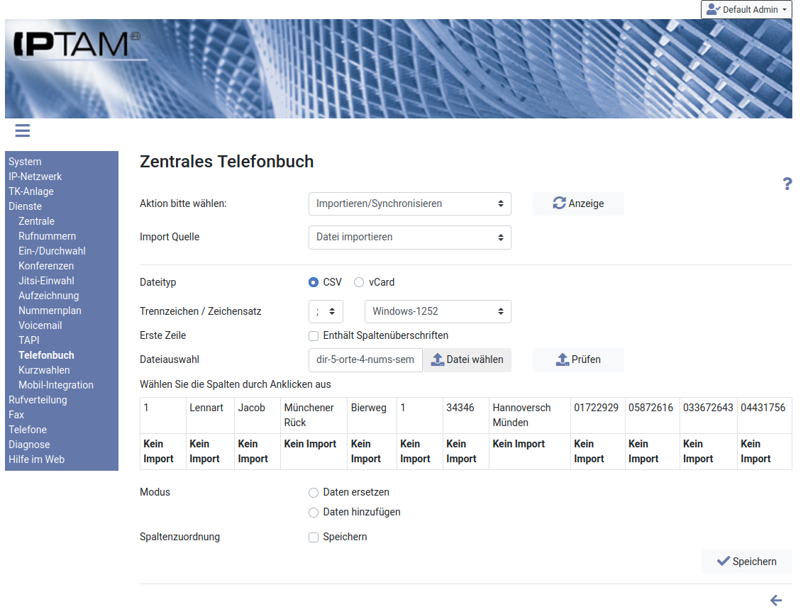 Sie können vorhandene Telefonbucheinträge und Kontaktlisten im CSV-Format in Ihre IPTAM