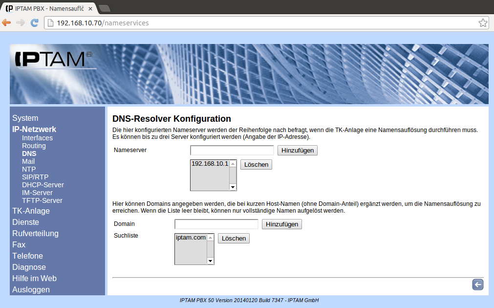 ® IP-Telefonanlage andere Rechner nicht nur über ihre IP-Adresse sondern auch über ihre Namen erreichen soll, muss sie deren Adressen über einen DNS Resolver auflösen können. Dazu können im Menü