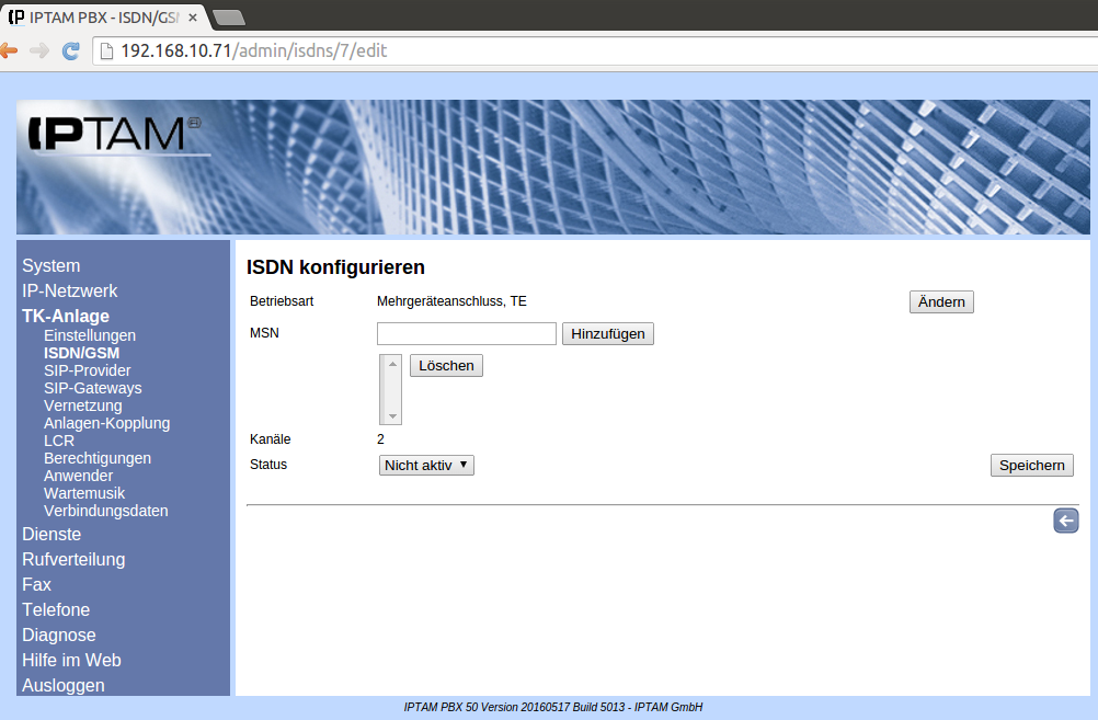 Nach je­der Eingabe einer MSN wird diese über den Button „Hinzufügen“ der Anlage bekannt ge­macht. Einmal eingetragene MSNs können über den Button „Löschen“ wieder entfernt werden. Setzen Sie anschließend den Status auf „aktiv“. Je nach eingesetzter ISDN-Hardware kann die Aufforderung zu einem Neustart erfolgen. Klicken Sie in diesem Fall auf den angebotenen Link.
