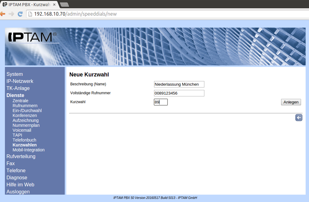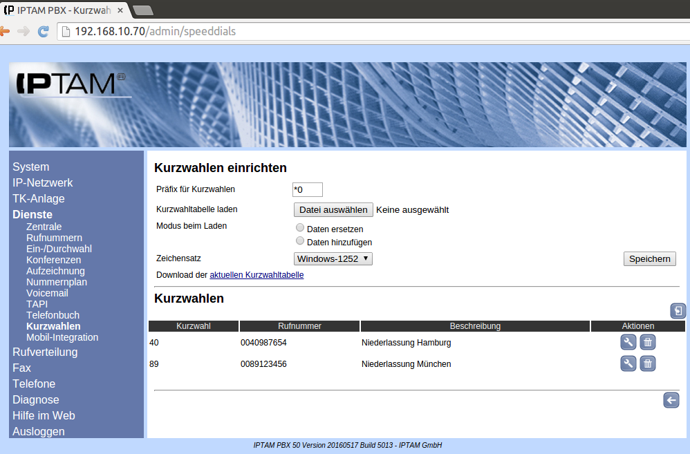 Neben der Möglichkeit, Kurzwahlen direkt in der IPTAM