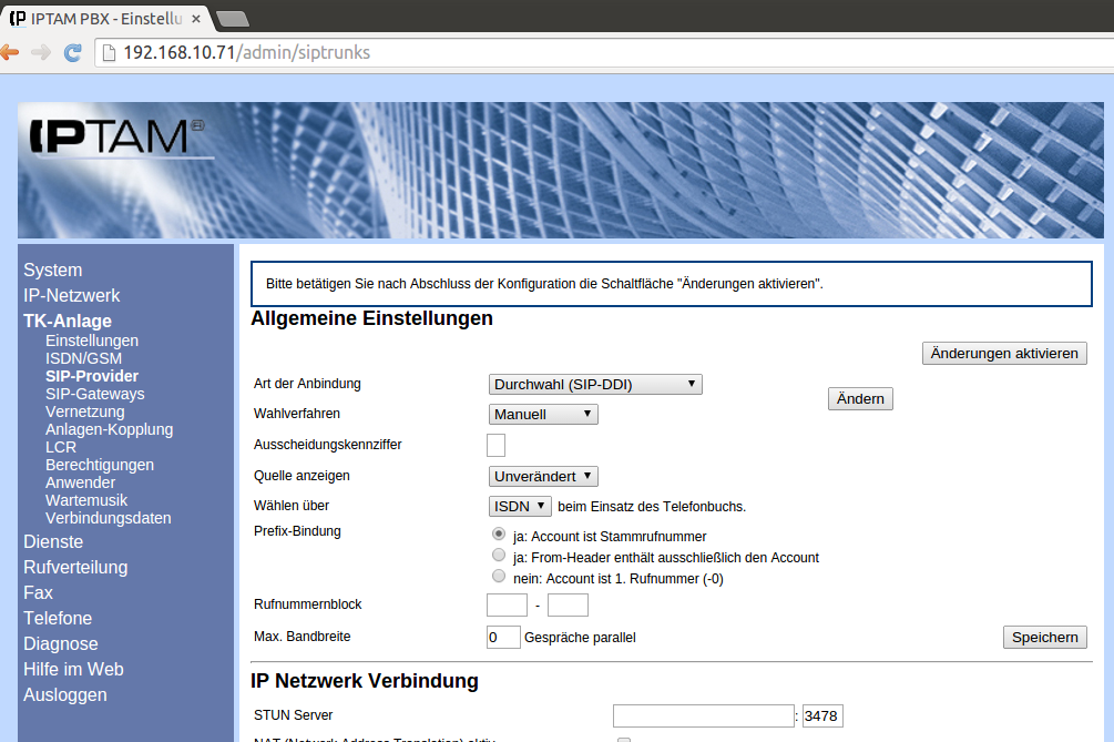 Nachdem Sie die Einstellungen zum SIP Provider vorgenommen haben, sollte Sie sich nun um die Einstellungen zur IP Netzwerk Verbindung kümmern.