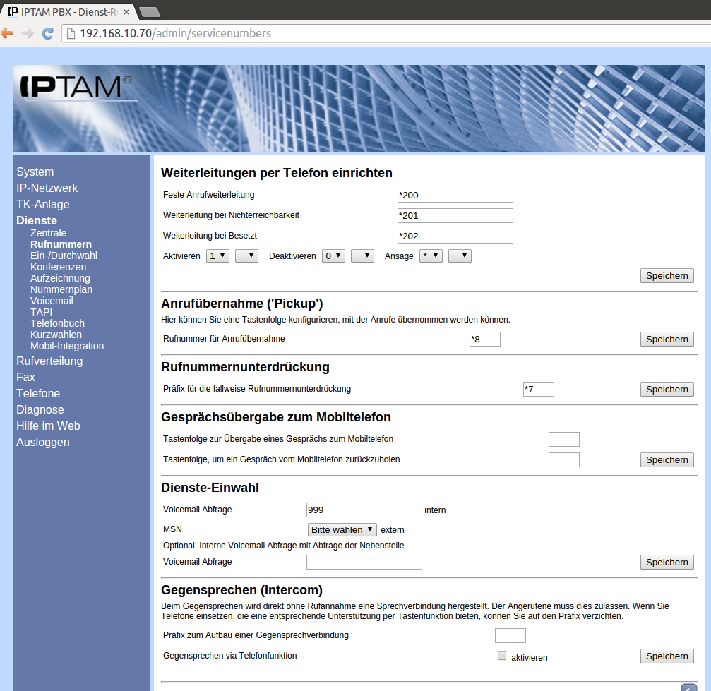 Image Jedem Anwender der Anlage steht eine persönliche Voicemail-Box zur Verfügung. Im Menü Dienste ► Rufnummern geben Sie im Abschnitt „Dienste-Einwahl“ im Feld „Voicemail Abfrage“ eine Nebenstelle an, unter der die Anwender der Telefonanlage ihre Voicemail-Box erreichen können. Wenn die Anlage an einem ISDN-Anlagenanschluss oder an einem durchwahlfähigen SIP Anschluss betrieben wird, ist die Voicemail-Abfrage sowohl von intern als auch von extern unter dieser Durchwahl zu erreichen. Verfügt Ihre Anlage über einen ISDN-Mehrgeräteanschluss, können Sie, wie in der Abbildung dargestellt, aus einer Liste der noch nicht vergebenen MSNs wählen, um die Abfrage von extern zu ermöglichen. Im Beispiel in der Abbildung wurde zur Voicemail-Abfrage die Rufnummer „999“ vergeben. Um die Voicemail-Abfrage von extern zu ermöglichen, wählen Sie über das Auswahlfeld „extern“ bei einem ISDN-Mehrgeräteanschluss eine freie MSN aus. Bei anderen Zugangstechniken wie ISDN-Anlagenanschlüssen oder SIP-DDI-Anschlüssen wird die gleiche Nebenstelle für die interne wie für die externe Abfrage verwendet. In diesem Fall sollten Sie Nebenstellenbezeichnungen, die extern nicht erreichbar sind (wie z.B. *100) vermeiden.