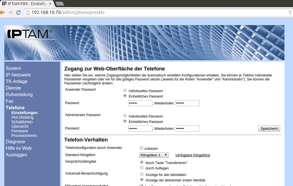 Jedes aktuelle IP-Telefon verfügt über unterschiedliche Klingeltöne, die als Standard eingerichtet werden können. Die IPTAM® PBX unterstützt Sie bei der Konfiguration dieses Klingeltons, wobei die Auswahl durch die Telefonmodelle eingeschränkt sein kann. Voraussetzung ist, dass Sie die Telefone mit Hilfe der IPTAM® PBX konfigurieren.