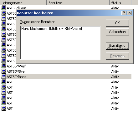 Jetzt weisen Sie den Nebenstellen Anwender Ihres Active Directory zu. Wählen Sie dazu eine Nebenstelle aus und öffnen Sie die Einstellungen.
