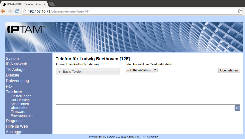 Die Zuordnung eines konkreten Telefons zu einem Anwender erfolgt im Menü