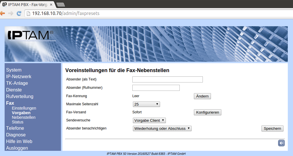 Im Feld „Maximale Seitenzahl“ stellen Sie ein, wie viele Seiten ein versendetes Fax maximal haben darf.