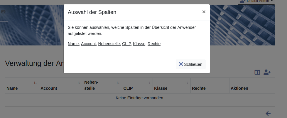 In der Tabelle können je nach den Einstellungen in der Anlage weitere Spalten sichtbar sein.. Diese Spalten sind: