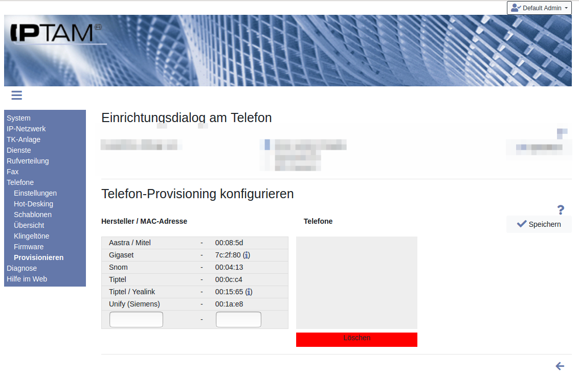 Telefone►Provisionieren legen Sie dann die Hersteller fest, für deren Telefone IP-Adressen aus dem Pool „Telefone“ durch den DHCP Server der IPTAM