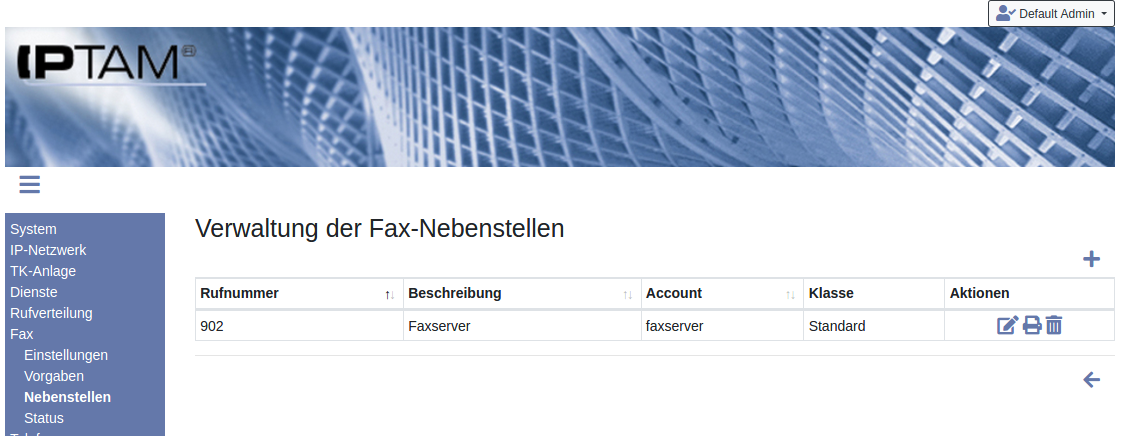 felangen Sie wieder in die Übersicht, in der Sie die neu angelegte Fax-Nebenstelle sehen. Das Icon
