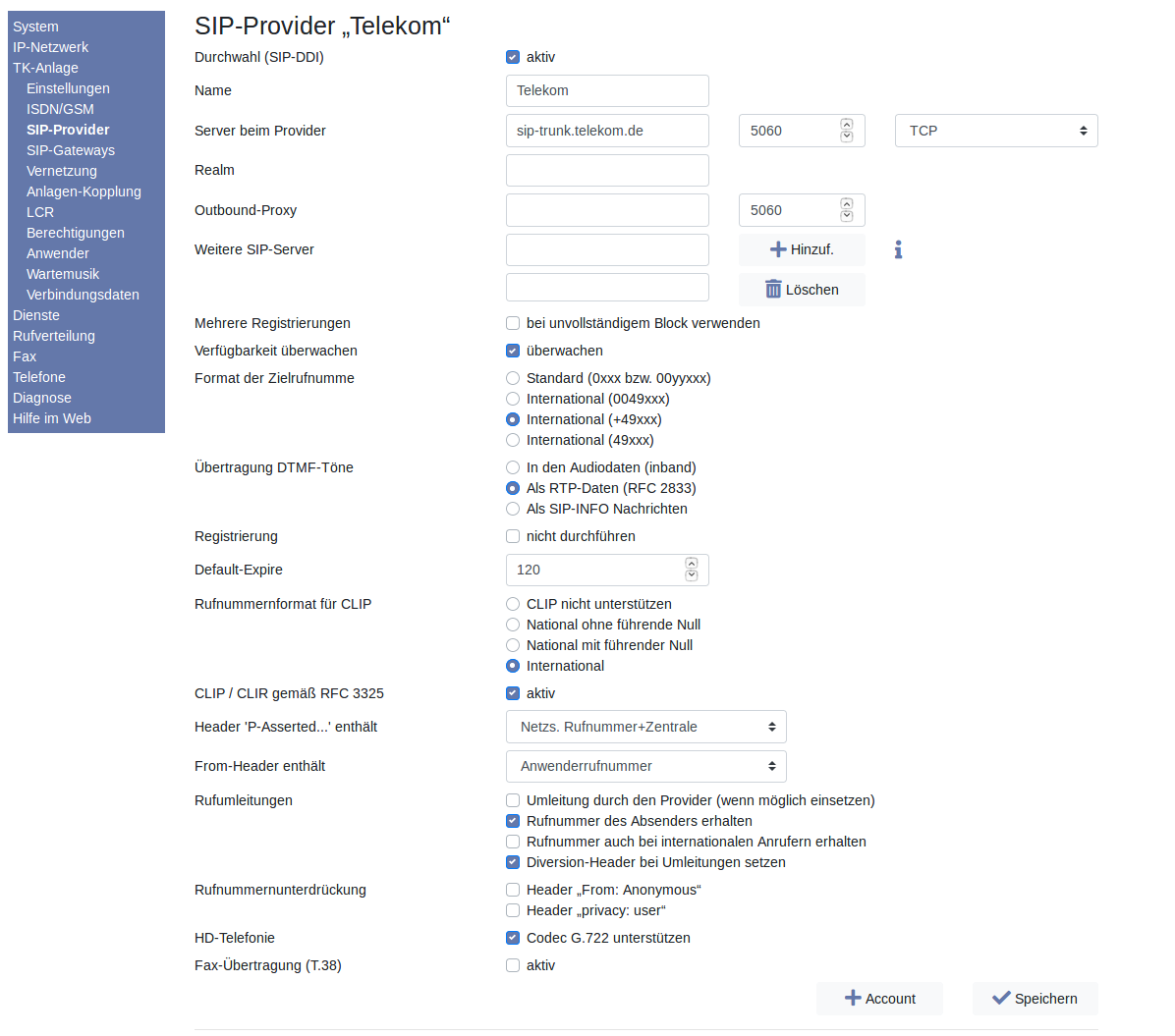 Einstellungen: DeutschlandLAN SIP-Trunk (Deutsche Telekom AG)