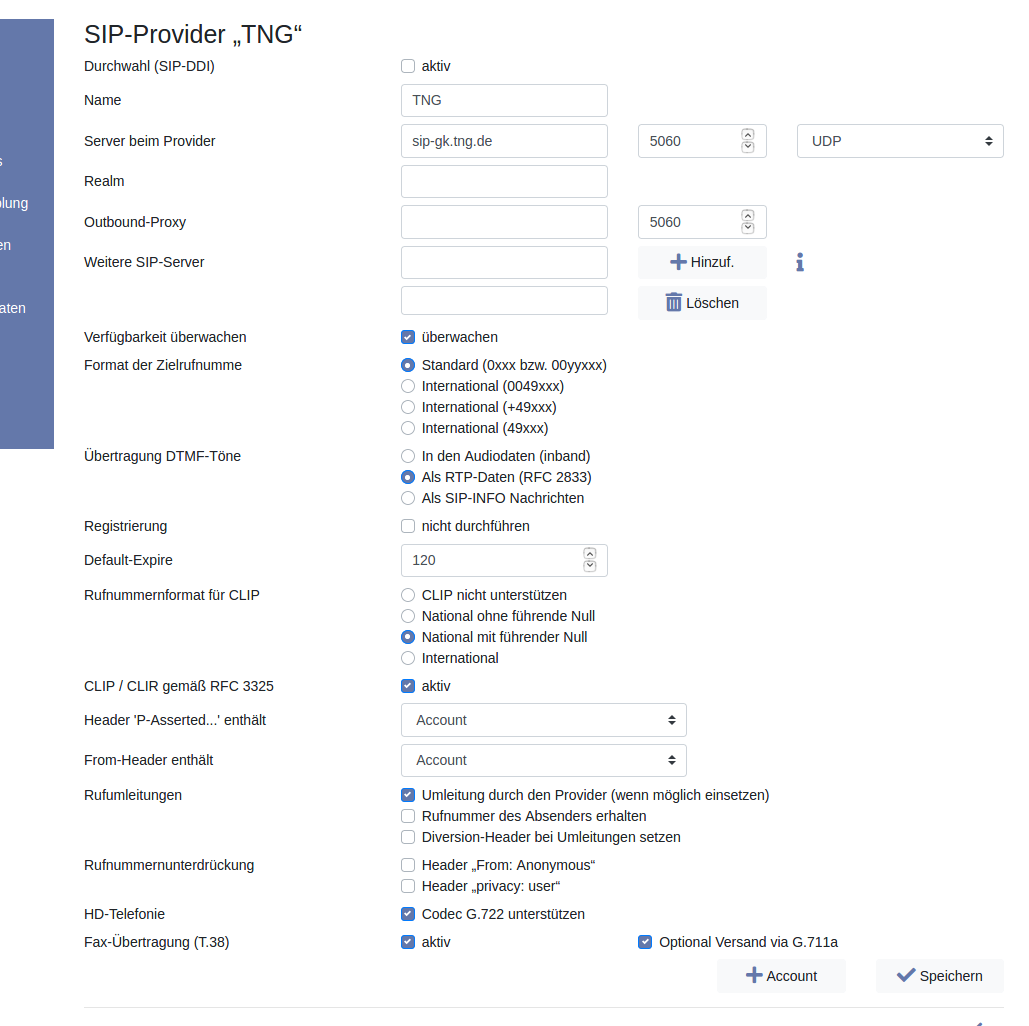 Einstellungen: SIP Einzelanschluss (TNG Stadtnetz GmbH)