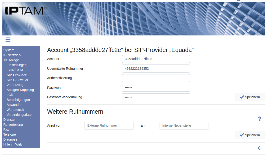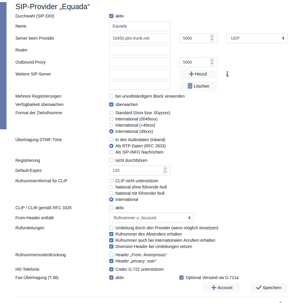 Einstellungen: equada VOIP Trunk (equada GmbH)