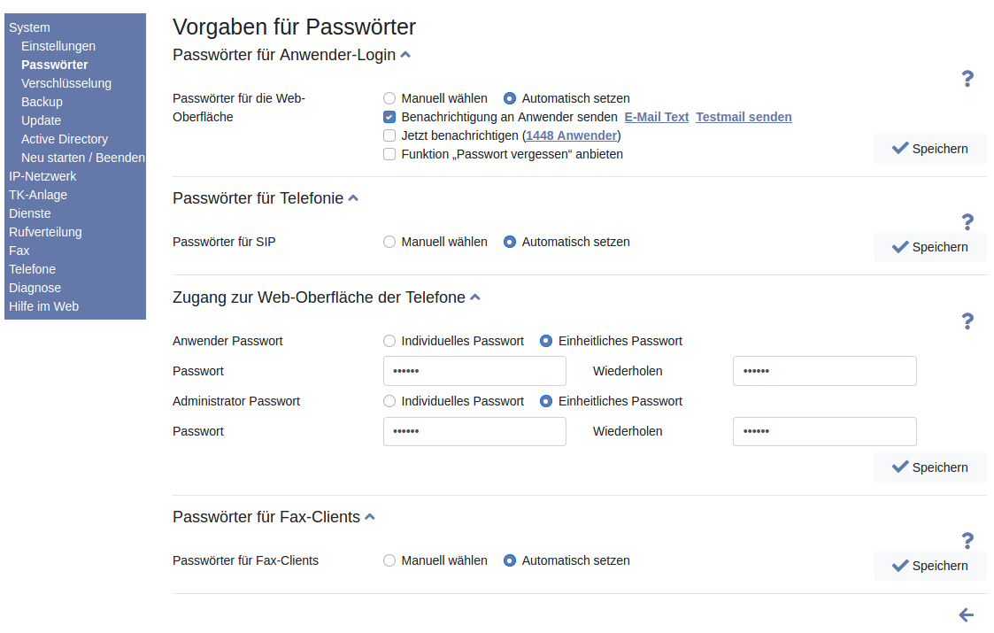 Passwörter für die Web-Oberfläche der Telefone