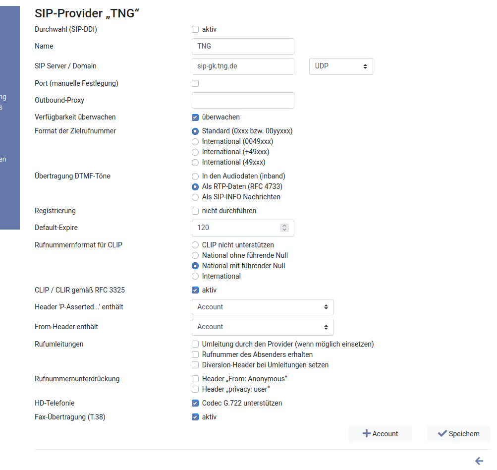 Einstellungen: SIP Einzelanschluss (TNG Stadtnetz GmbH)