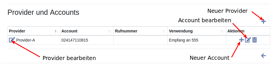 • oberhalb der Tabelle zum Anlegen eines neuen Providers
