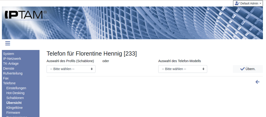 Zuordnung eines Telefonmodells zu einem Anwender. Diese Option steht bei allen Anwendern zur Verfügung, bei denen noch kein Telefonmodell zugeordnet wurde. |