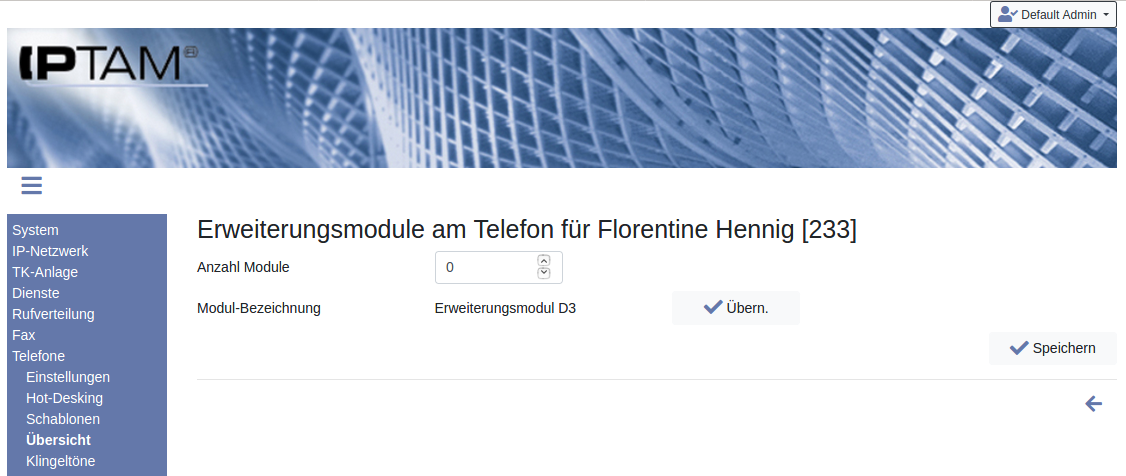 Speichern“, um die Einstellungen zu übernehmen. Sie gelangen dann zur Konfiguration des Telefons.
