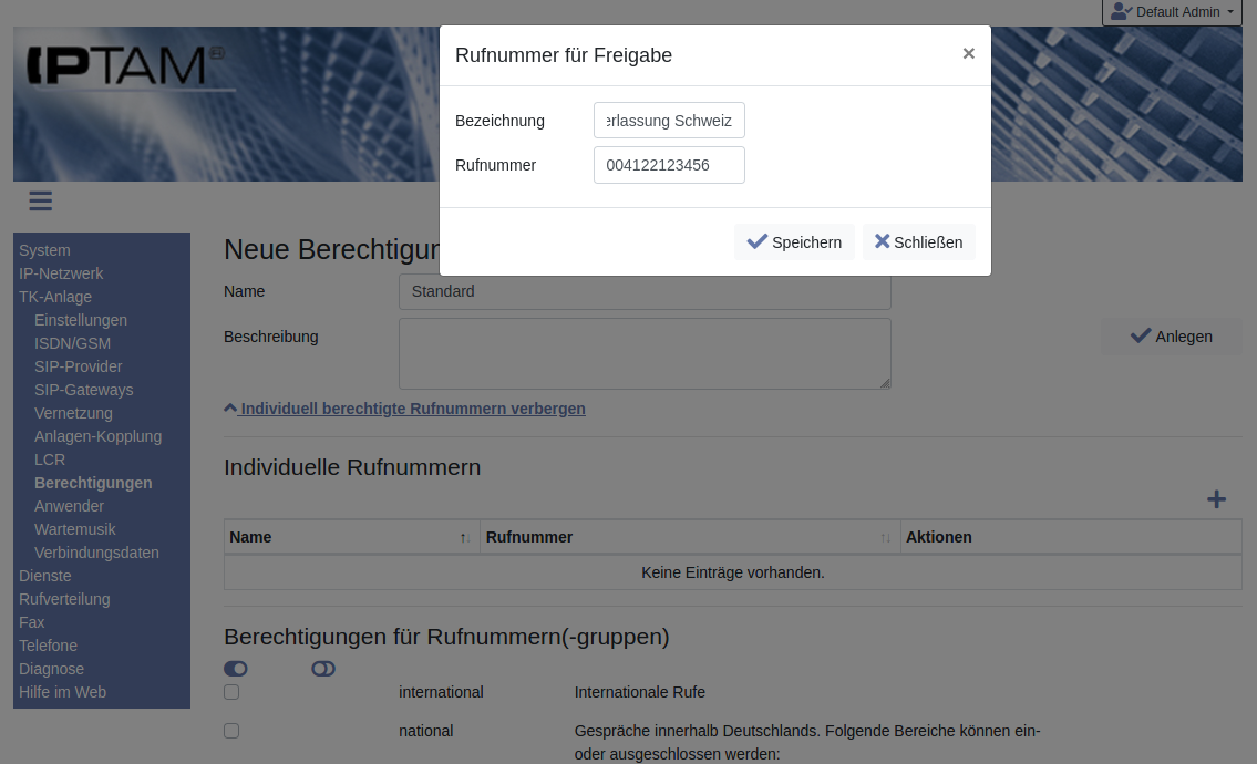 - Firma mit Auslandsstandorten: Mitarbeiter sollen keine internationalen Gespräche führen können, aber dennoch die Kollegen am Auslandsstandort anrufen können.