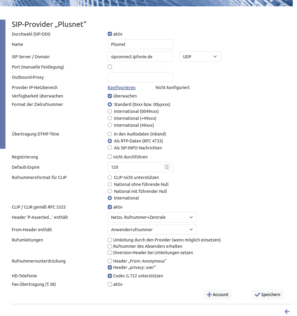 Einstellungen: IPfonie® Extended Connect (Plusnet GmbH)