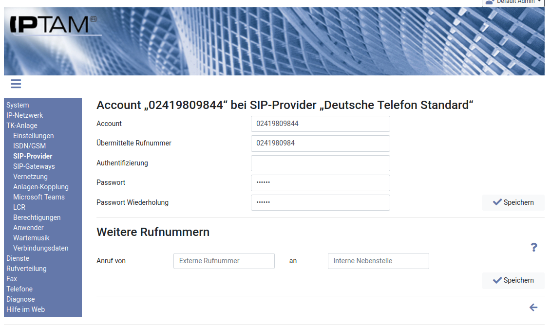 Einstellungen: SIP Tk-Anlagenanschluss (Deutsche Telefon Standard GmbH)