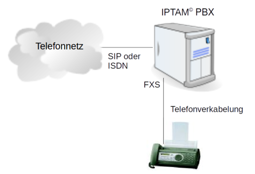 Die IPTAM PBX unterstützt das Medium Fax in vielfältiger Weise. Sie können vorhandene Fax-Geräte oder Fax-Server an der IPTAM PBX betreiben oder den in der IPTAM PBX integrierten Fax-Server verwenden. Auch ein gemischter Betrieb ist möglich und häufig auch sinnvoll, da sowohl Fax-Server als auch Fax-Geräte ihre Vorteile haben.Fax-Server