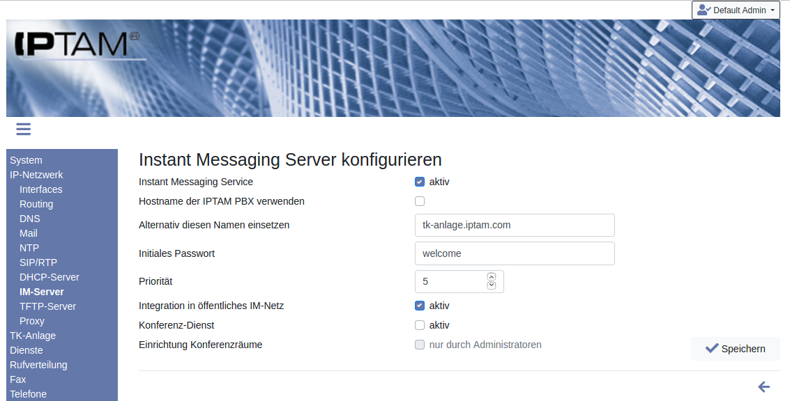 Kommunikation zwischen XMPP-Servern erfolgt über TCP-Port 5269. Um also den in der IPTAM® PBX integrierten XMPP-Server in das öffentliche Netz zu integrieren, benötigen Sie eine Port-Weiterleitung für diesen Port.Nach der Konfiguration des XMPP Servers sollten Sie nun die XMPP Clients Ihrer Anwender einrichten.