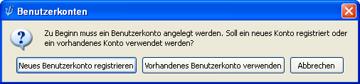 In der folgenden Dialogbox wählen Sie Ihr Benutzerkonto. Klicken Sie in dem Dialog auf „Vorhandenes Benutzerkonto verwenden“.