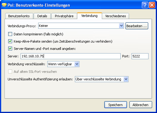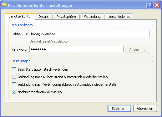 Konfiguration des XMPP-Client „Psi“